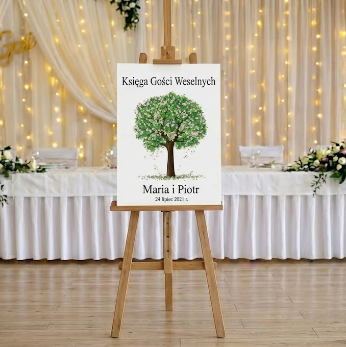 Księga gości Kwitnące Drzewo Wiśni to esencja romantyzmu. Personalizowany obraz na płótnie, który pozwoli Waszym gościom “dopełnić” koronę drzewa ich życzeniami, tworząc pamiątkę o niezwykłej lekkości i wdzięku.