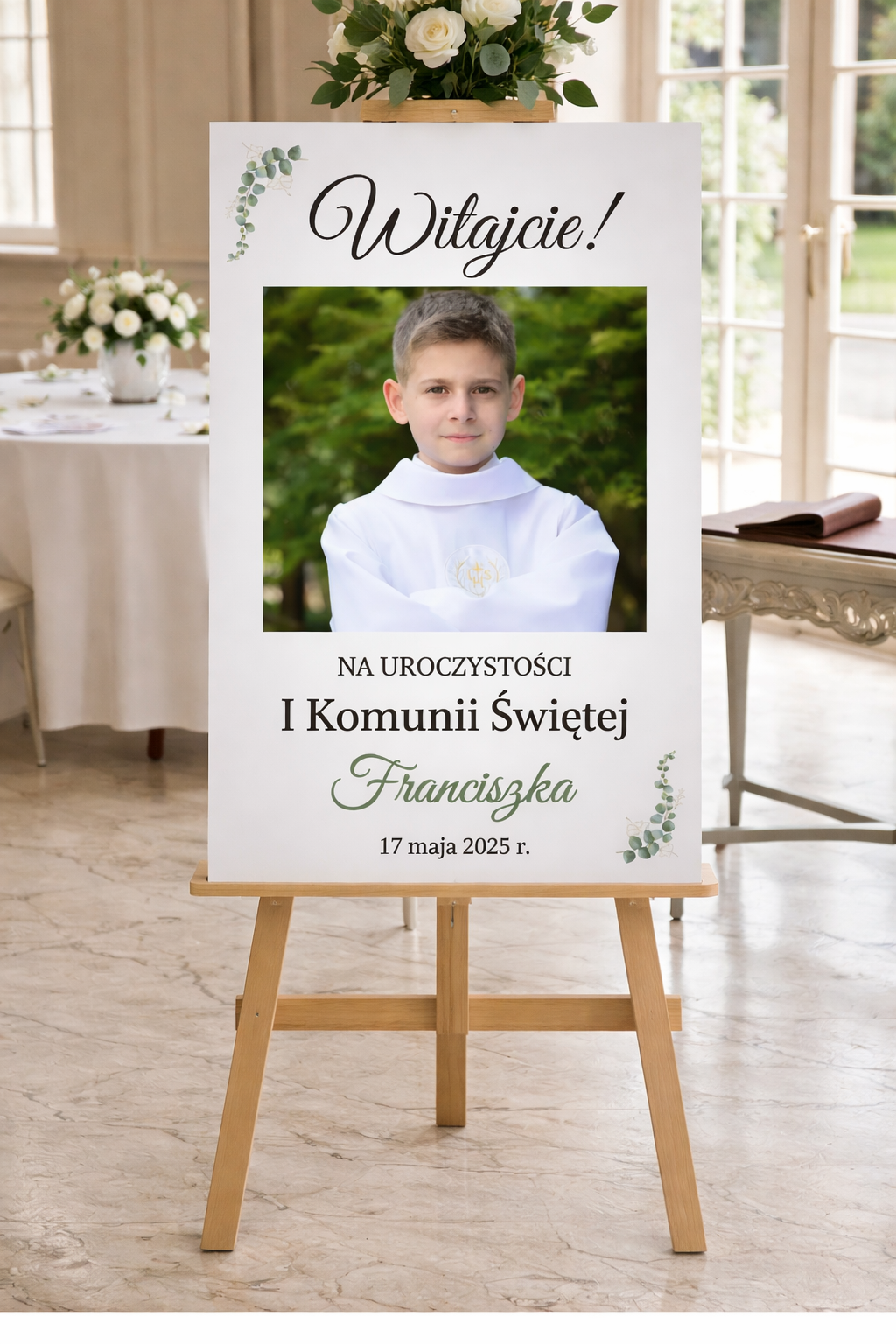 Pierwsza Komunia Święta to moment, który zasługuje na oprawę pełną klasy. Nasza personalizowana tablica powitalna to elegancki sposób na przywitanie gości i stworzenie trwałej pamiątki, która podkreśli sakralny wymiar uroczystości Twojego syna.