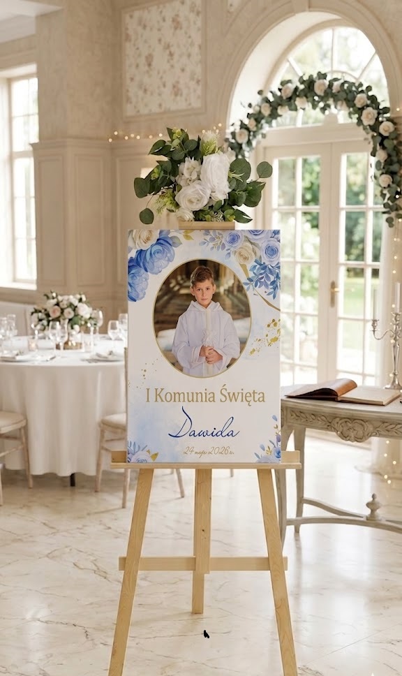 Pierwsza Komunia Święta to moment, który zasługuje na oprawę pełną klasy. Nasza personalizowana tablica powitalna to elegancki sposób na przywitanie gości i stworzenie trwałej pamiątki, która podkreśli sakralny wymiar uroczystości Twojego syna.