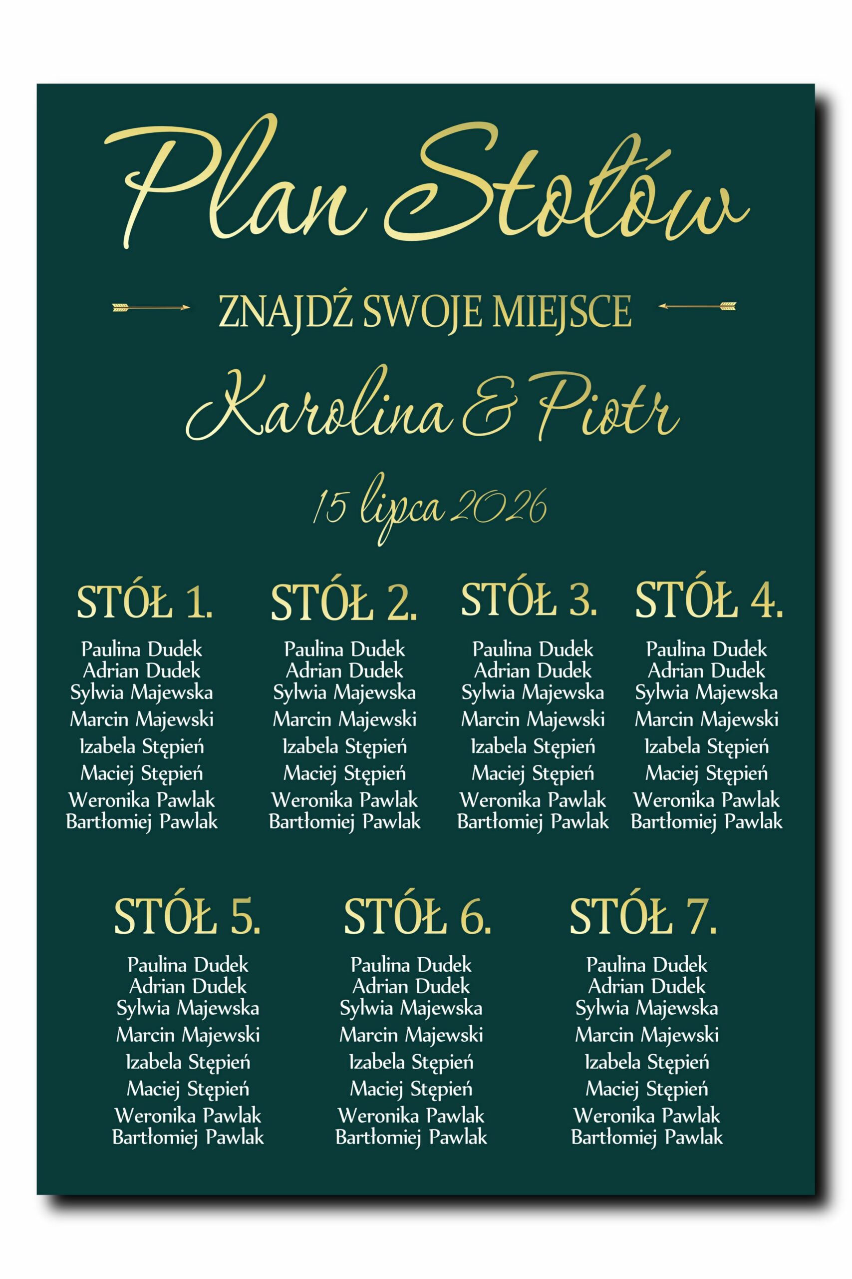 Model ProduktuTablica z Planem Stołów – Butelkowa Zieleń i Złoto